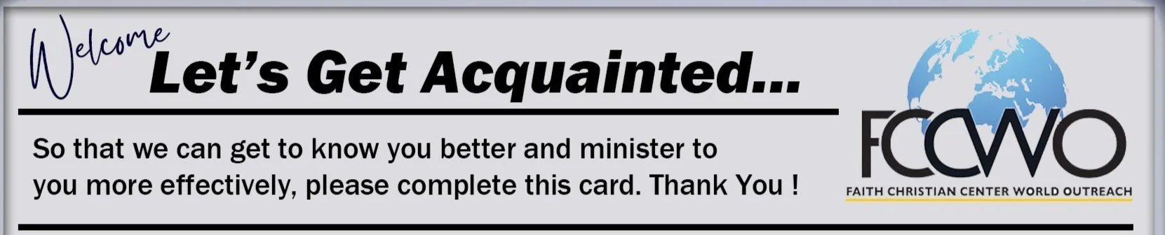 Name * First Name Last Name Phone * (###) ### #### Email * is it ok to call, Text or Email * YES NO Age Group * 13-18 19-25 26-35 36-45 46-55 56-65 65+ I learned about FCCWO Church from: * Does FCC have Permission to share photos of you on our website and or social media? * YES NO Does FCC have Permission to share photos of your Child/Children on our website and or social media? * YES NO Thank you!